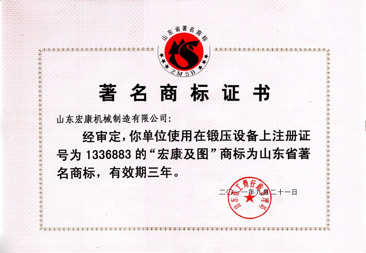著名商標證書